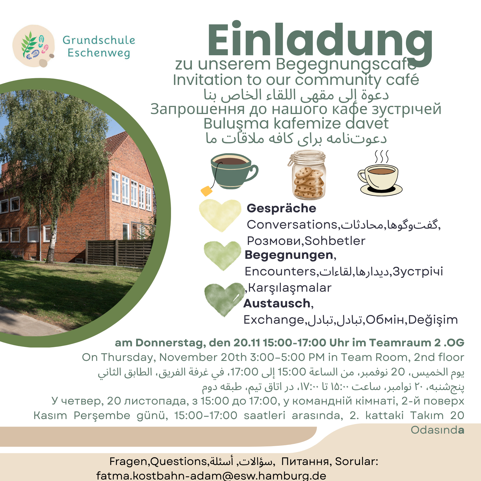 Am Donnerstag, den 20.11 von 15:00-17:00 Uhr laden wir zum Begegnungscafe ein.